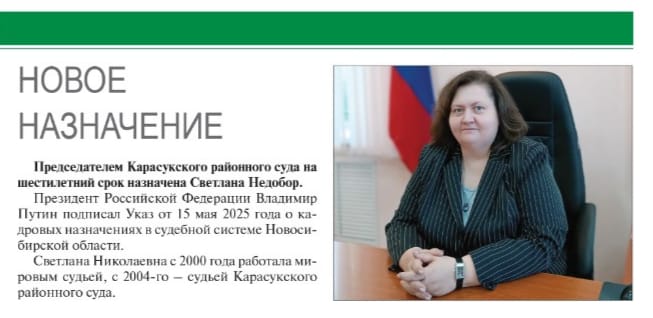 Фотогалерея от 04.06.2025 — О назначении председателя Карасукского районного суда Новосибирской области.