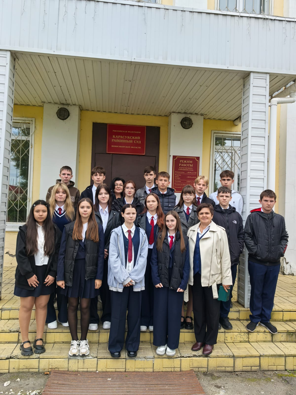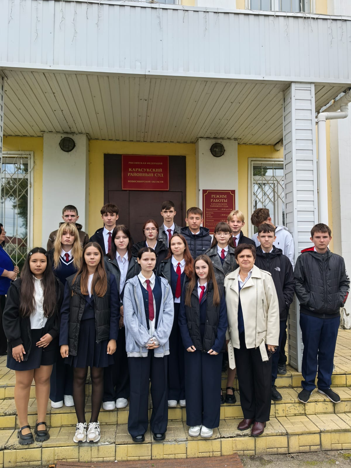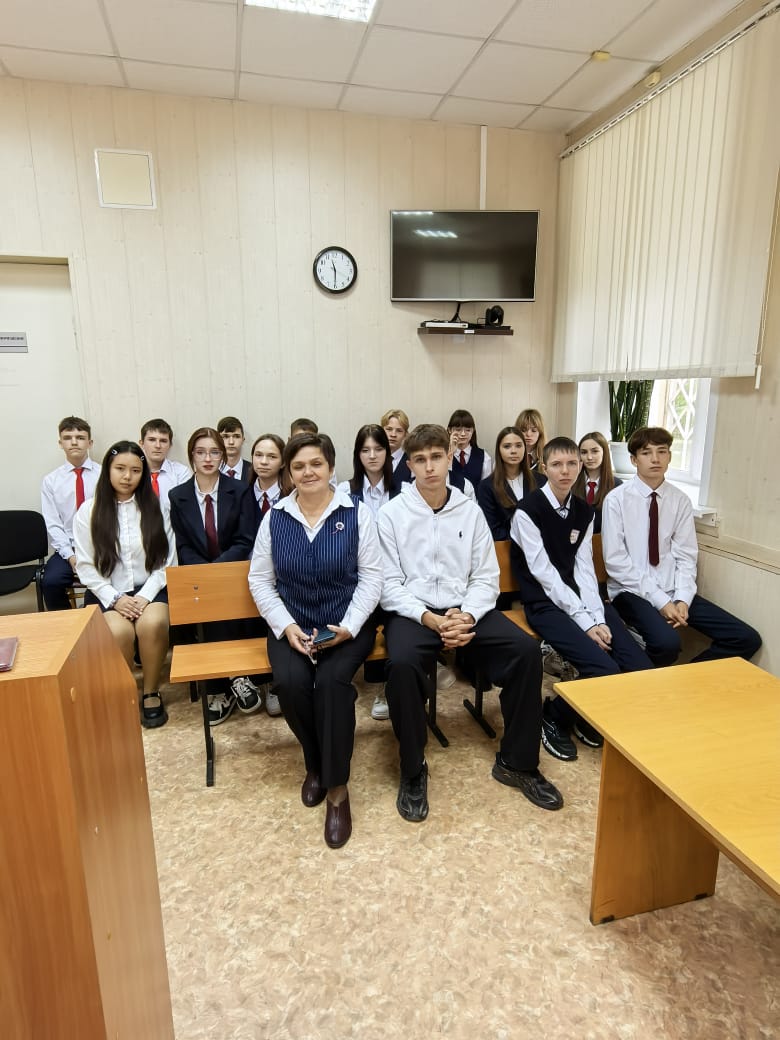Встреча с учащимися 10 класса МБОУ Гимназия номер 1 имени Героя Советского Союза В. Н. Тимонова прошла в здании Карасукского районного суда. В ходе встречи ребята присутствовали в судебном заседании при рассмотрении уголовного дела в отношении Фомченко С. Н., обвиняемого в совершении преступления, предусмотрено го ч. 1 ст. 264.1 УК РФ, после чего председательствующий по уголовному делу судья Жильцова Е. А. ответила на вопросы учащихся. Судья Жильцова Е. А. провела учащимся экскурсию по зданию суда. Судебные приставы по обеспечению правопорядка рассказали ребятам о специальных средствах, находящихся на их вооружении. Встреча со школьниками прошла в тёплой, дружественнойобстановке.